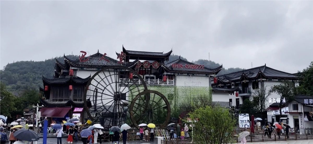 旅游怎么能少得了逛吃呢?于是第二天,我們從宜昌轉(zhuǎn)向恩施,走進(jìn)當(dāng)?shù)刈铛r明的地域文化標(biāo)識(shí)和網(wǎng)紅打卡地——女兒城,這是一座集歷史文化、風(fēng)景名勝和土家風(fēng)情于一體的旅游景區(qū)。在這里大家感受到了濃郁的土家族獨(dú)特民俗文化,品嘗了眾多當(dāng)?shù)靥厣朗?,身心得到了放松,味蕾也得到了犒賞。