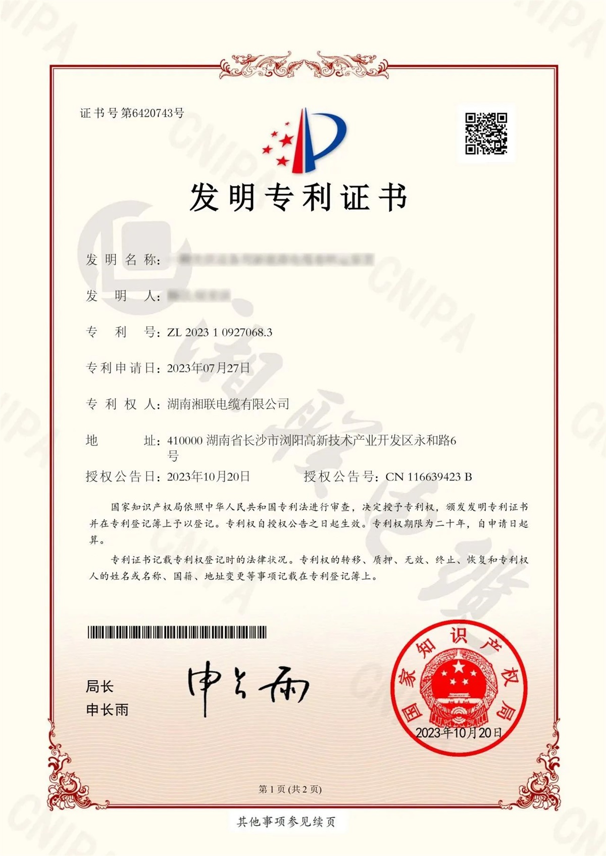 近期,經(jīng)國家知識產(chǎn)權(quán)局審核批準(zhǔn),湘聯(lián)電纜再次獲得4項(xiàng)發(fā)明專利和2項(xiàng)實(shí)用新型專利授權(quán),本次專利的申報(bào)類別廣泛,涉及電線電纜的保護(hù)、檢測、防爆等技術(shù)應(yīng)用,對線纜的精益生產(chǎn)制造具有重要作用。