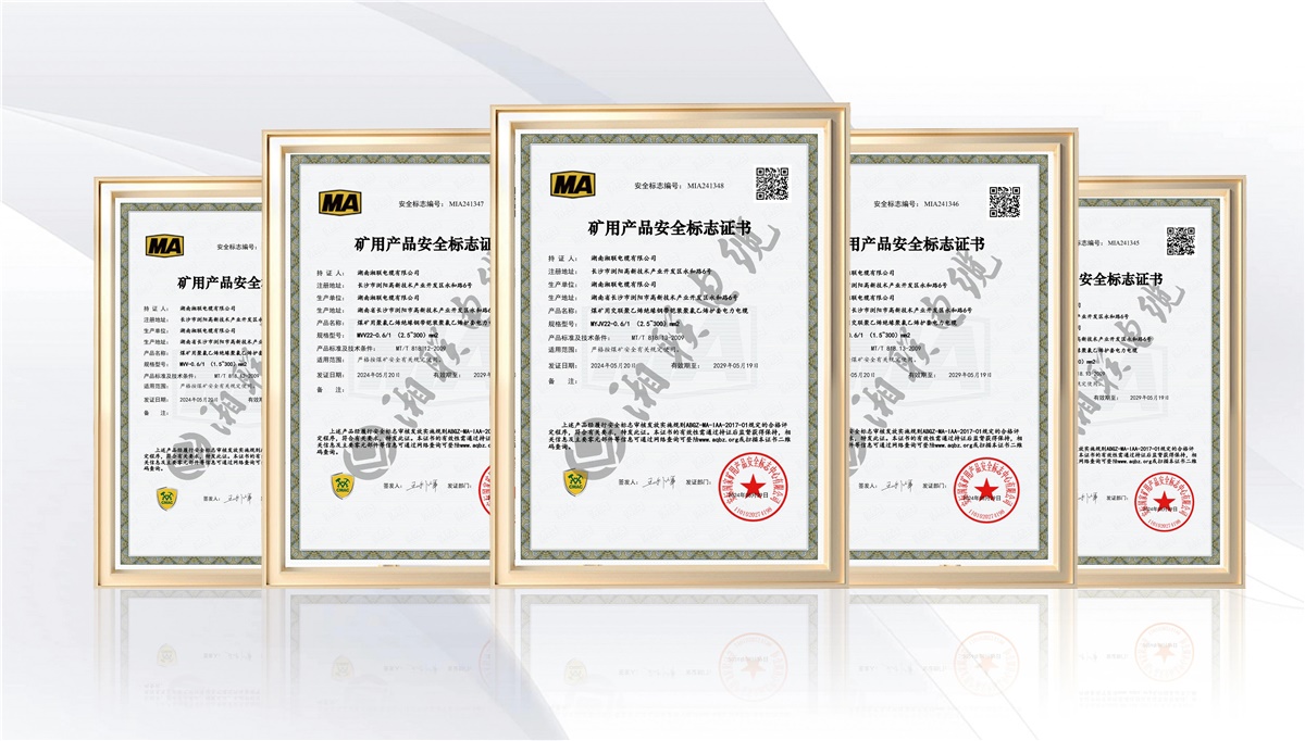 礦用電纜必須嚴(yán)格遵守國(guó)家及行業(yè)雙重標(biāo)準(zhǔn),需按照GB/T 12972《礦用橡套軟電纜》、MT818-2009《煤礦用阻燃電纜》生產(chǎn),都應(yīng)經(jīng)過安標(biāo)國(guó)家礦用產(chǎn)品安全標(biāo)志中心頒發(fā)礦用產(chǎn)品安全標(biāo)志證書,才能向市場(chǎng)出售 。近期,湘聯(lián)電纜的MVV-0.6/1(1.5~300)mm2煤礦用聚氯乙烯絕緣聚氯乙烯護(hù)套電力電纜、MYJV-8.7/10(25~300)mm2煤礦用交聯(lián)聚乙烯絕緣聚氯乙烯護(hù)套等6款電力電纜成功取得礦用產(chǎn)品安全標(biāo)志證書,其產(chǎn)品在阻燃、耐壓、抗拉強(qiáng)度等方面均達(dá)到行業(yè)標(biāo)準(zhǔn)。